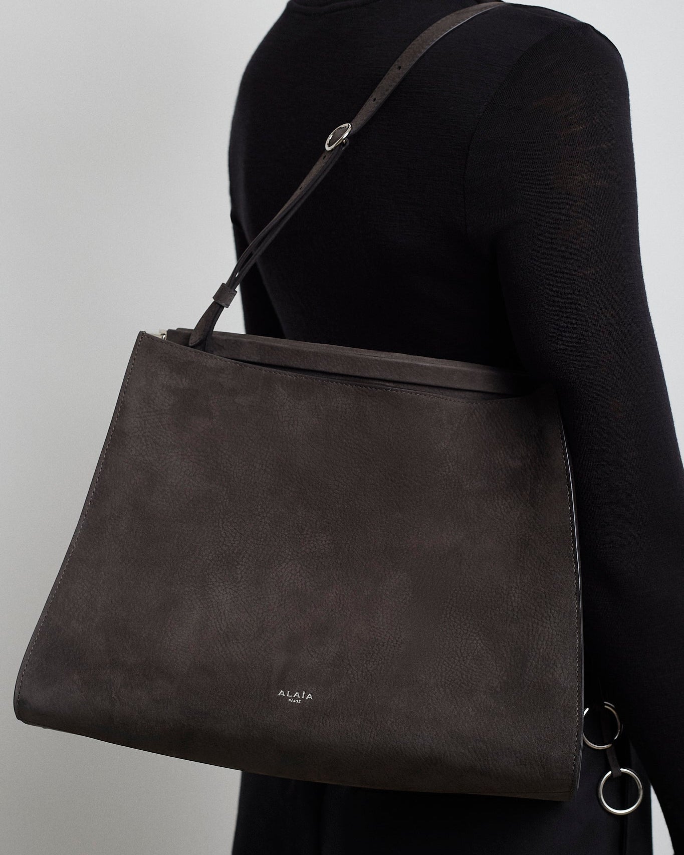 Mina 25 vienne greige suede tote bag