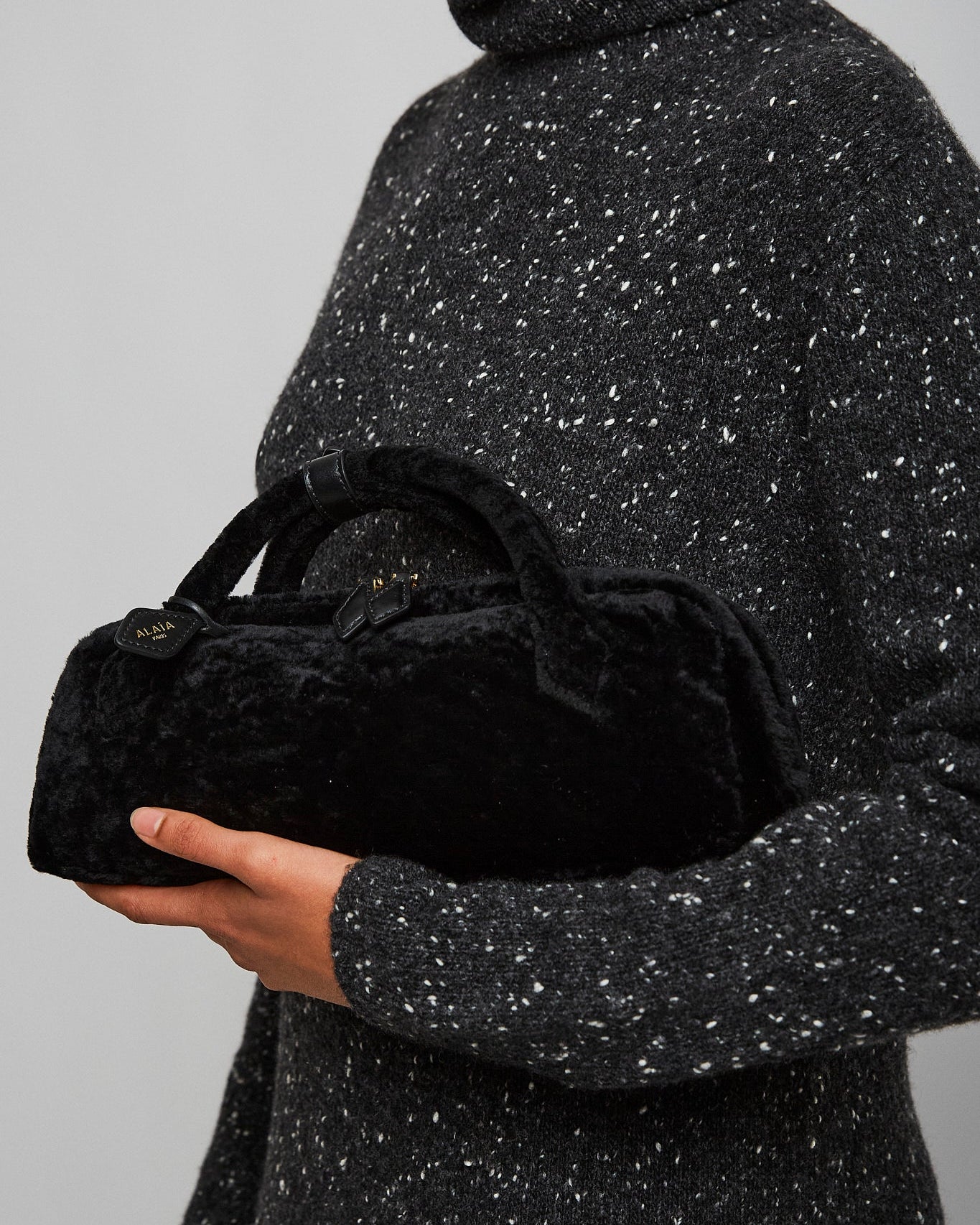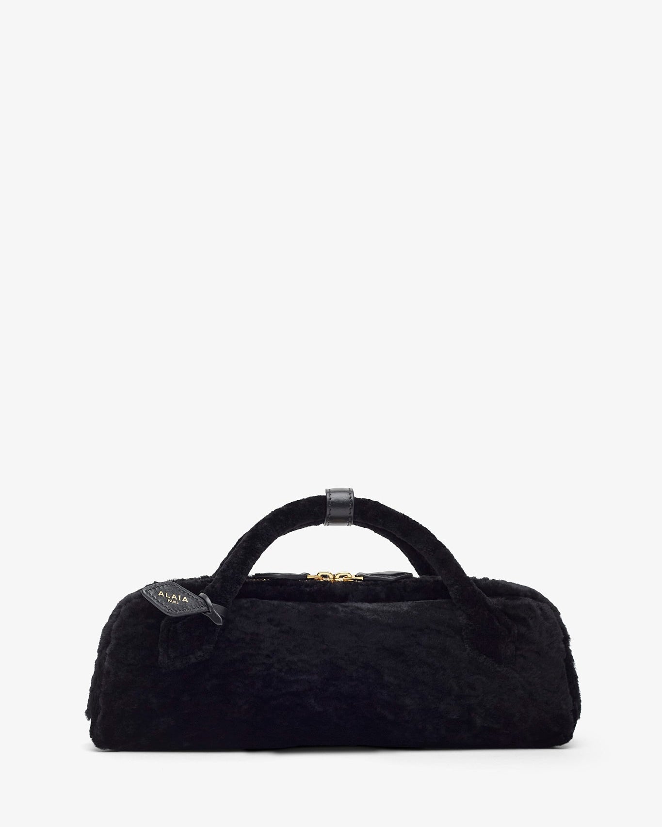 Le Teckel black shearling clutch