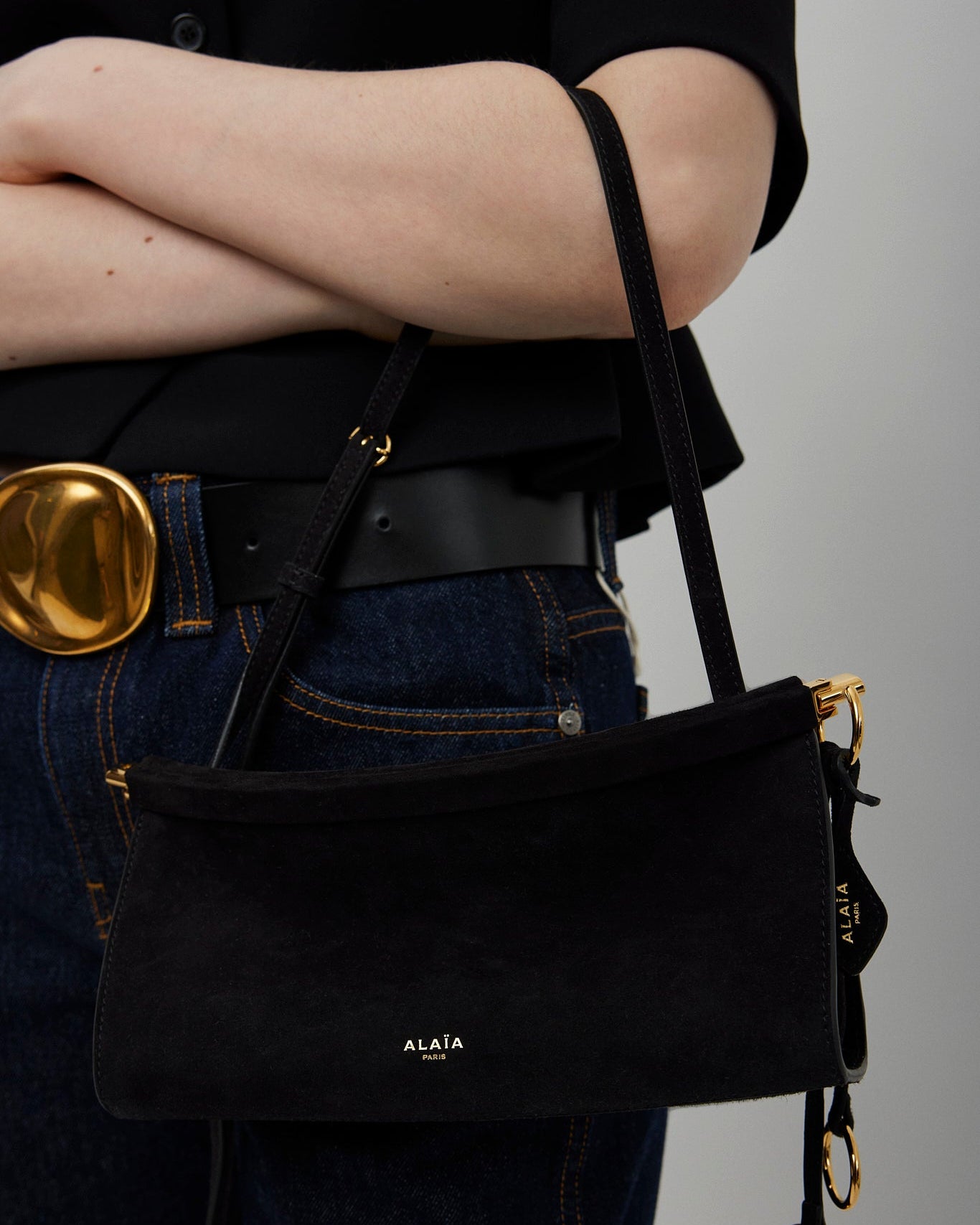 Le Click EW Small black suede bag