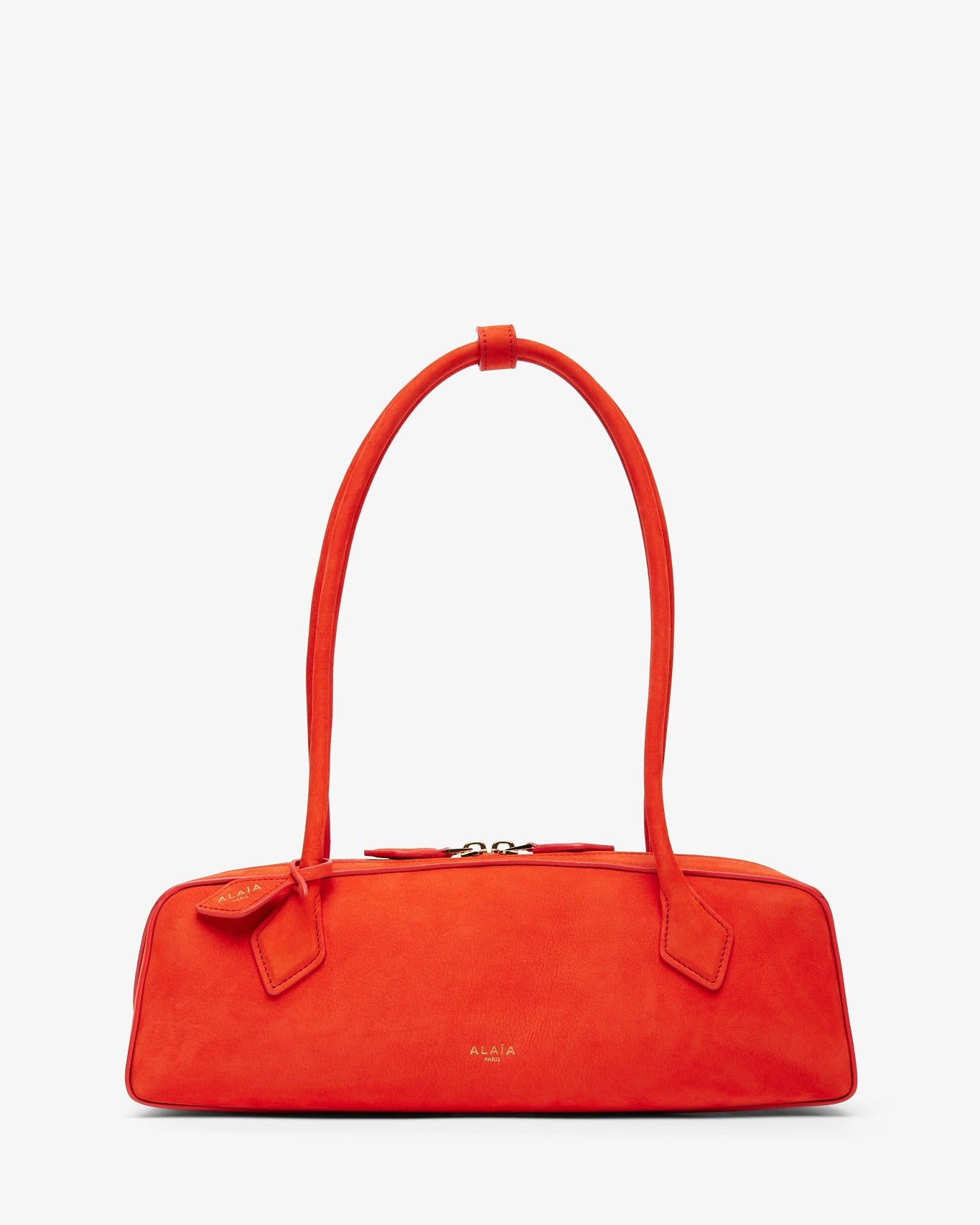 Le Teckel Medium orange suede bag