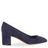 Navy suede pump from Ferragamo. The Areszzo has a 55mm block heel and an angled toe.