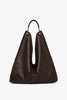 Dark brown leather shoulder bag from The Row. The Bindle 3 is made of smooth nappa leather with three-dimensional shaping and softly padded handle, complete with a removable inner zipped pouch.