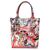 Multicolored mini patent leather tote bag from Christian Louboutin. The Cabata mini tote bag emphasizes elegance and sophistication. It is dressed in the exclusive Oh Xtian print adorned with silver signature spikes, complete with two handles, adjustable shoulder strap and the signature sneaker sole-inspired red rubber bottom.
