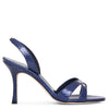 Blue elaphe waternsake slingback sandals from Manolo Blahnik. The sandals have a 90mm heel, a open toe and crisscross straps in front and an elasticized inset at slingback strap .