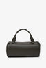 Grey leather round top handle bag from The Row. The Edith bag is made of finely grained calfskin leather with exposed zipper and magnetic closure. Lined in leather.
