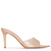 Clear glossy patent leather and pvc mule sandals from Gianvito Rossi. The Elle sandals have an 85 mm heel and simply slip on.