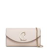 Beige leather wallet on chain bag from Christian Louboutin. The Loubi54 wallet is made of beige abrasivato leather and is adorned with a golden CL monogram. It can be carried by hand or over the shoulder with the detachable golden chain strap.