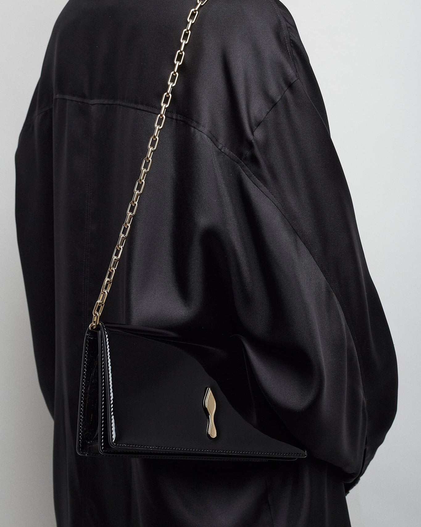 Bettina black patent clutch