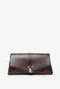 Dark red leather front flap crossbody bag from Ferragamo. The medium crossbody bag is made of semi-glossy calfskin leather with a golden Gancini clasp on the front flap. Carry as a clutch, shoulder bag or wear cross body with the adjustable, removable leather strap and golden chain.