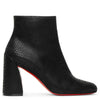 Black leather ankle boots from Christian Louboutin. The Turela boots have a 85mm heel, a rounded toe and a sculptural block heel that creates the illusion of a higher heel than the approachable 85mm.Signature red sole