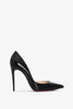 Black patent leather pumps from Christian Louboutin. The pumps have a 100mm heel and a pointed toe.