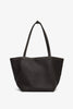Brown leather tote bag from The Row. The Park tote bag is made in pebbled calfskin leather with interior toggle closure, interior wristlet with adjustable strap and contrast topstitch detailing.