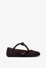 Brown suede ballet flats from Alaïa. The Teckel suede ballet flats are made of suede, featuring elongated straps across the top of the shoe and the Alaïa tag, playing with the signature details of Le Teckel bag.