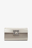 Grey silk blend satin clutch bag from Roger Vivier. The Envelope flap flower bag is made of silk blend satin featuring a crystal flower buckle on the front flap, complete with a silver-tone metal chain strap measuring approximately 105cm.