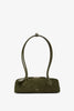 Green suede shoulder bag from Alaïa. The Le Teckel bag is made of suede with extended shoulder straps, a two-way zip fastening along the top, complete with a slip pocket inside to fit you cards.