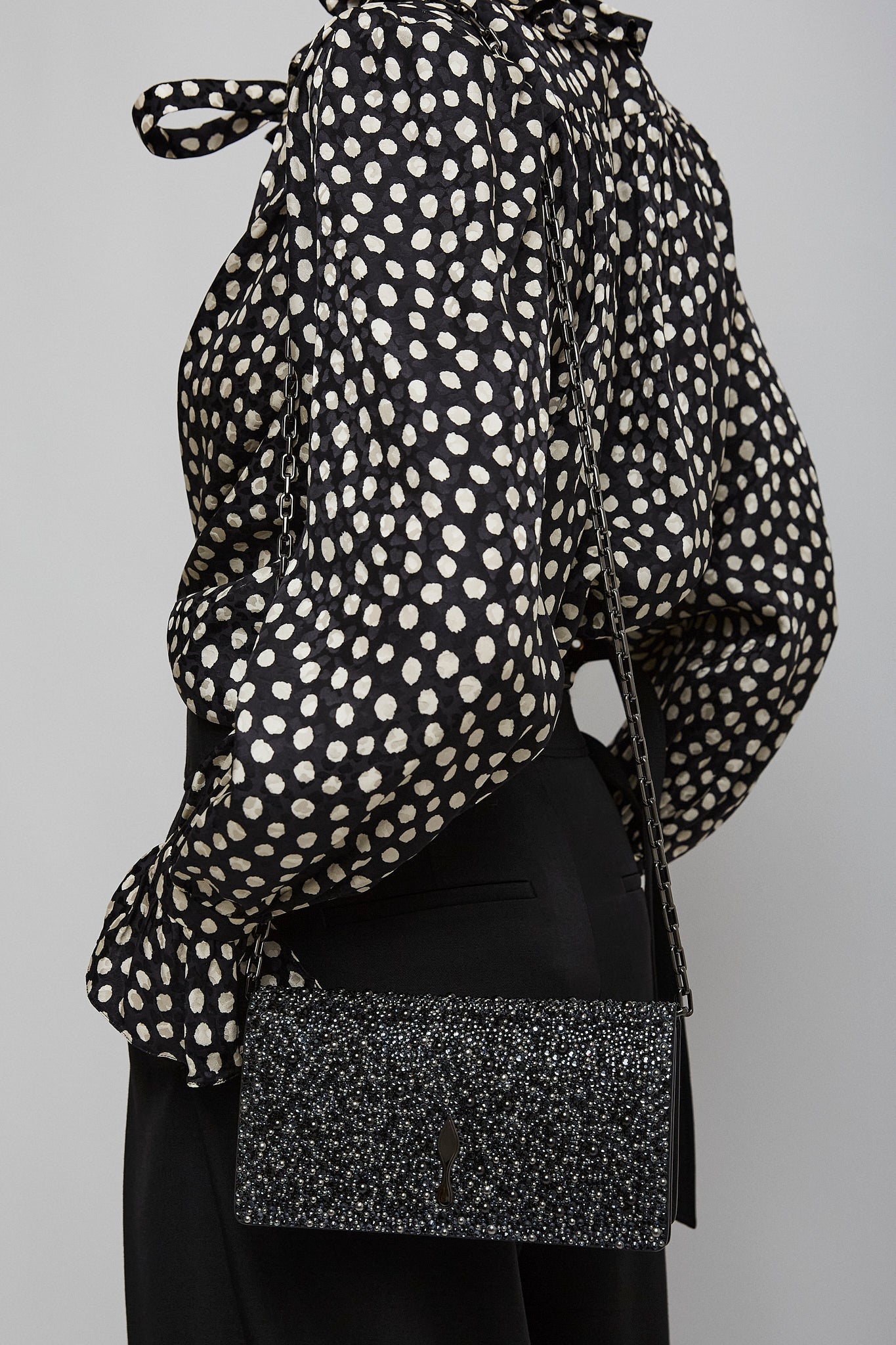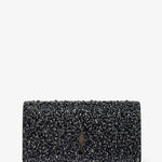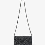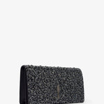 Black strass clutch bag from Christian Louboutin. The Bettina clutch bag is made in shimmering strass and pearl-embellished suede. It is finished with a hardware detail inspired by the iconic sole, offering multiple internal pockets and a detachable chain strap.