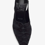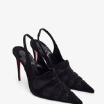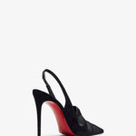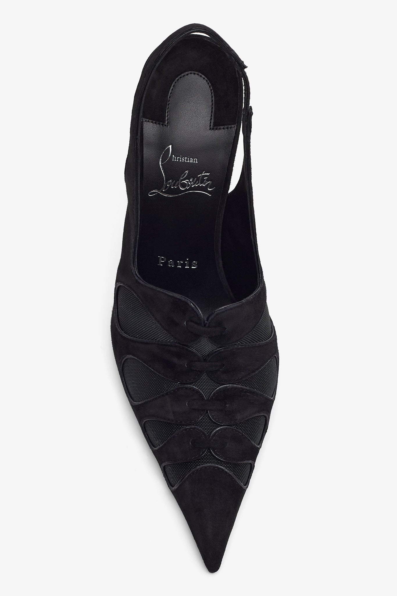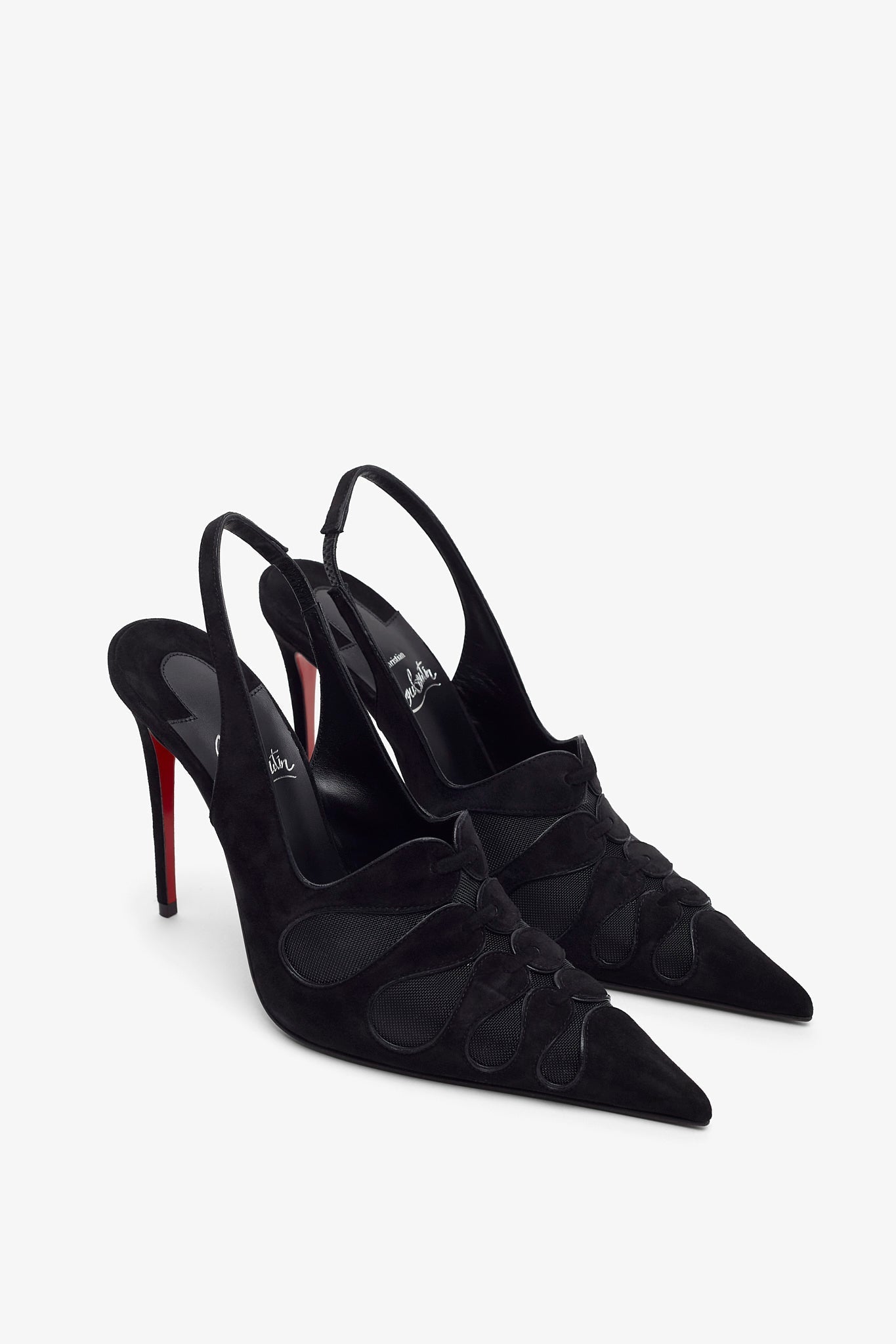 Black suede slingback pumps from Christian Louboutin. The Circus Max pumps are made from black veau velours and tone-on-tone mesh for a graphic effect. It features a pointed toe and a slender strap, set on a 100mm slim stiletto heel. This model features a new 'Everlasting Red Sole' that ensures resistance and lasting vibrancy for the signature Louboutin red.