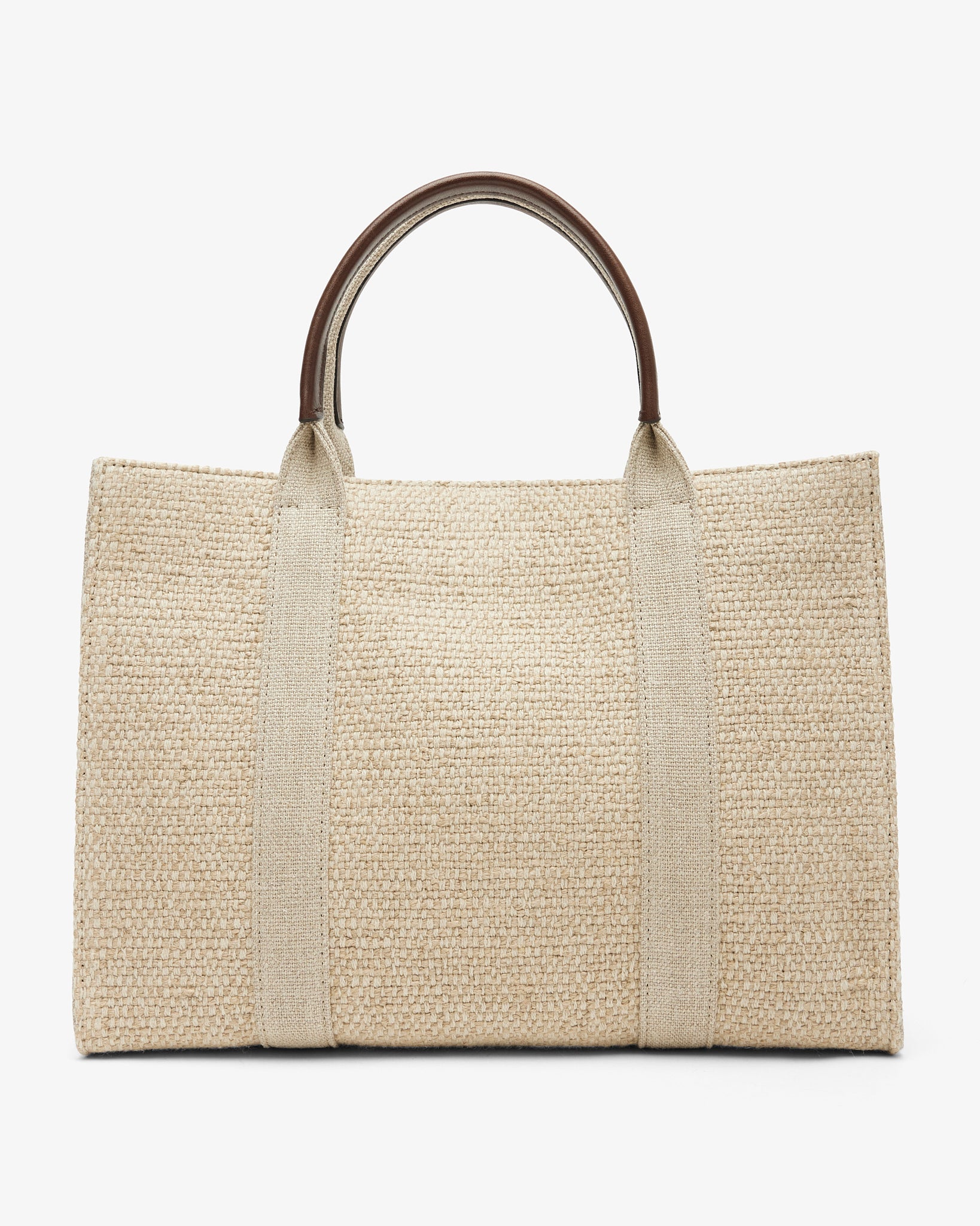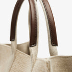 Natural linnen tote bag from The Row. The Georgia tote is crafted in woven linen for a textured finish and finished with supple leather handles. The roomy interior will fit all your essentials and has a slot pocket to keep smaller items organized.