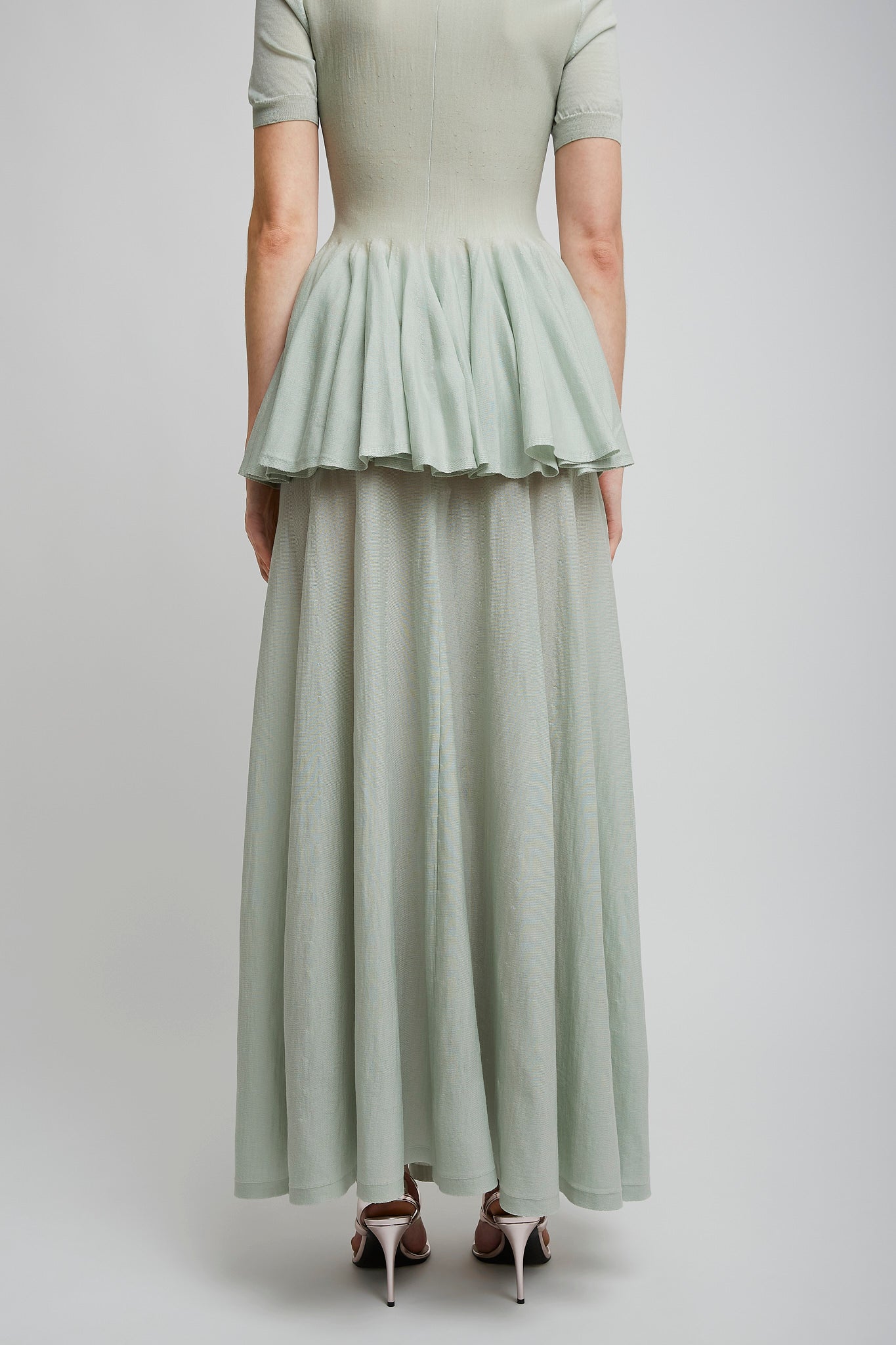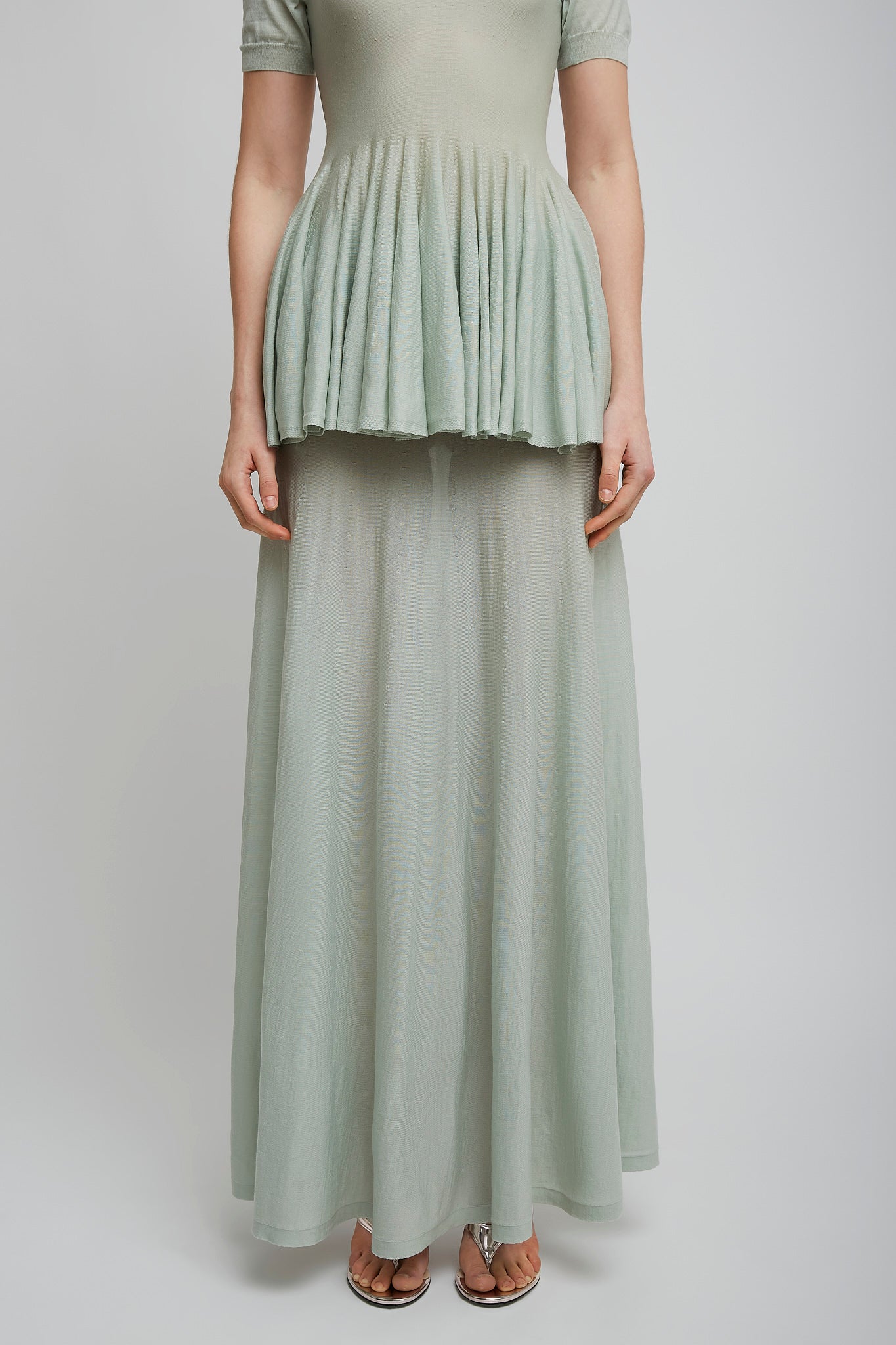 Light blue merino wool maxi skirt from Alaïa. The Maxi light blue skirt is made of ultra fine merino wool with a compact waistband, flare cut and maxi length.